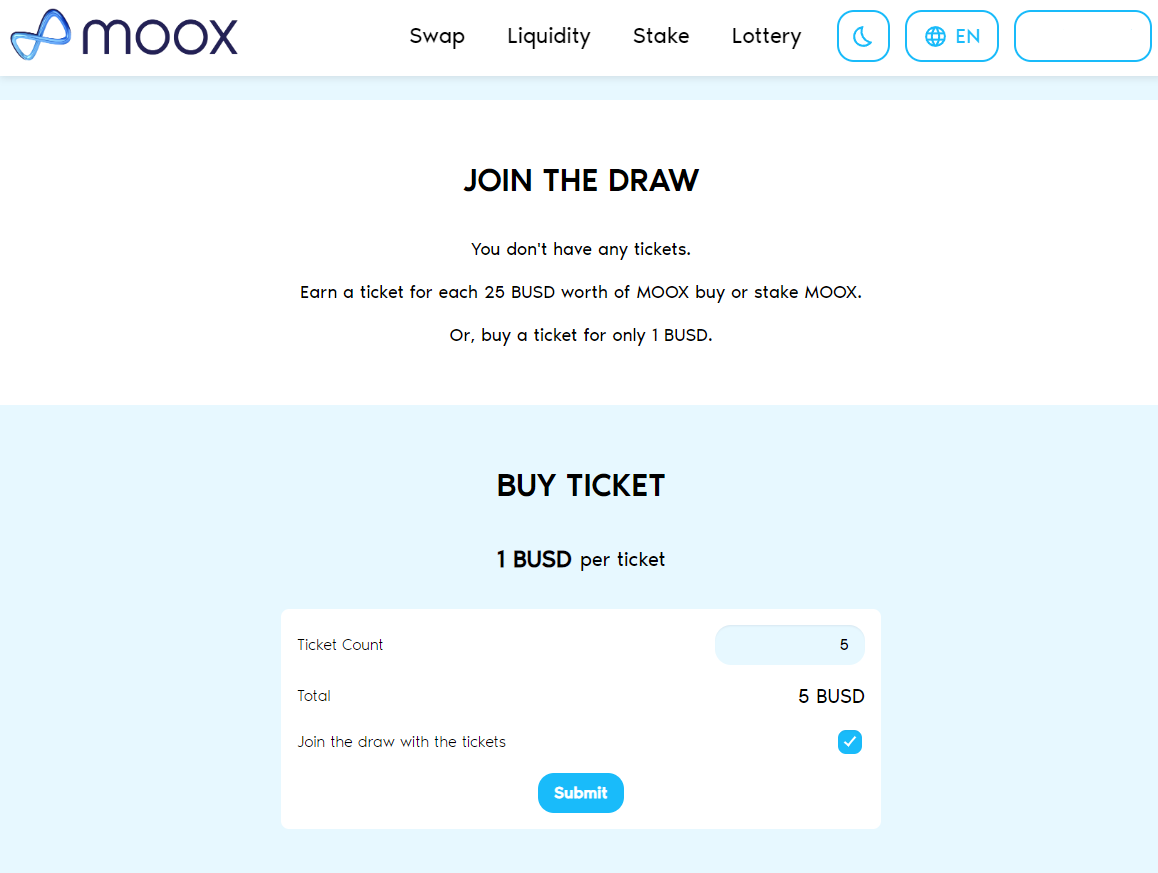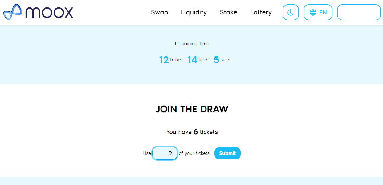 If you want to immediately join the draw with the tickets, click the checkbox. Otherwise, tickets will be transferred to wallet, and, you can use them whenever you want.